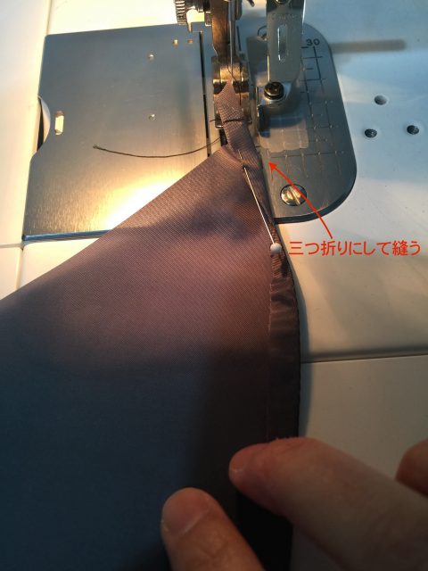 「捨てミシンで三つ折り始末」の方法書きますね。