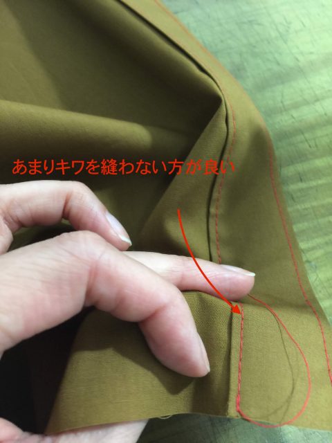 タックの中に入っている生地端も縫わなくちゃいけないので、
