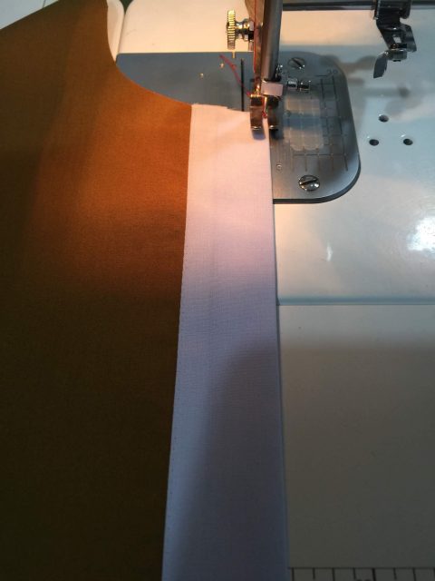 まずこっち側にステッチ↓ コバでも0.5cm幅でもどっちでも。デザインによります。