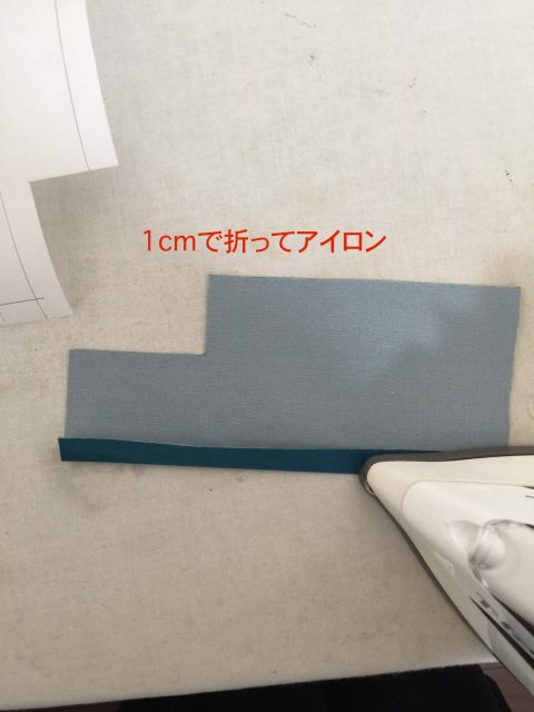 更に、この後のアイロン用に、かぶせアイロンする側を書いておくといいよ。