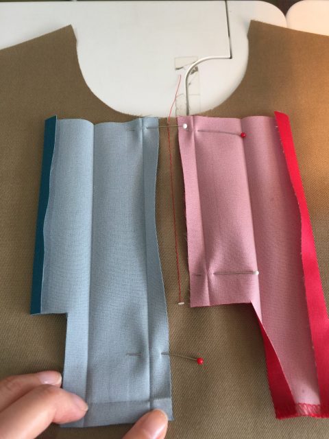 今日は説明しやすいように、左右のパターン作って生地の色も変えたから。