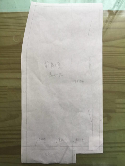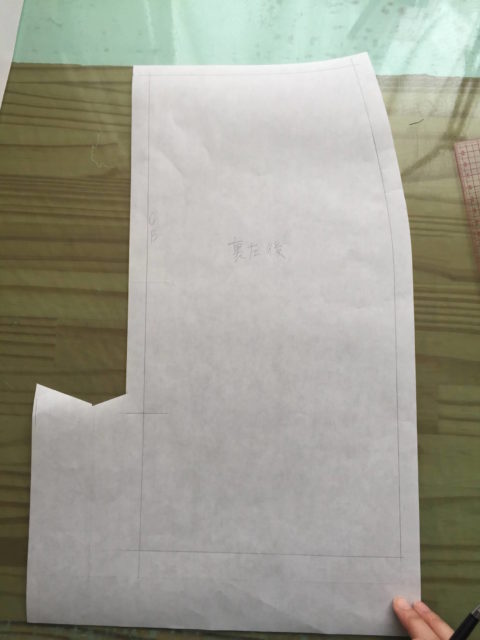 ここまでで表地のパターンが終了なので、次、裏地のパターン引きます。