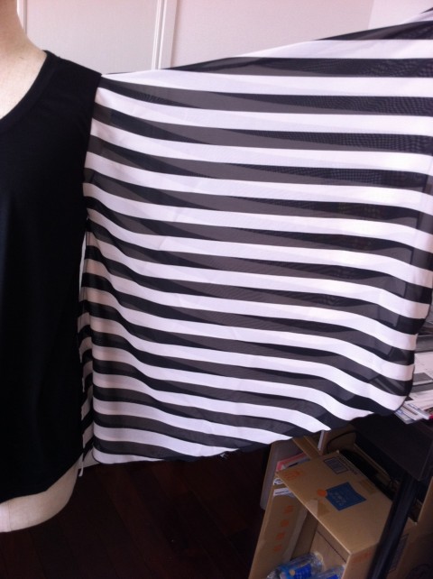 で、袖を付け替えるんだけど、いい生地がなかったのでコチラの服のシフォン部分(しましまの生地)使います。