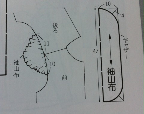 ショルダーポイントを削るのは、ギャザーを入れるために袖山を高くしたから、なので