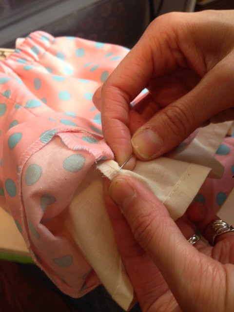 手縫い糸2本取りにして縫い代部分に縫い付け