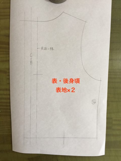 本当は身頃から裁ち出しでいいんだけど、今回は表側と裏側の説明がしやすいように分けました。