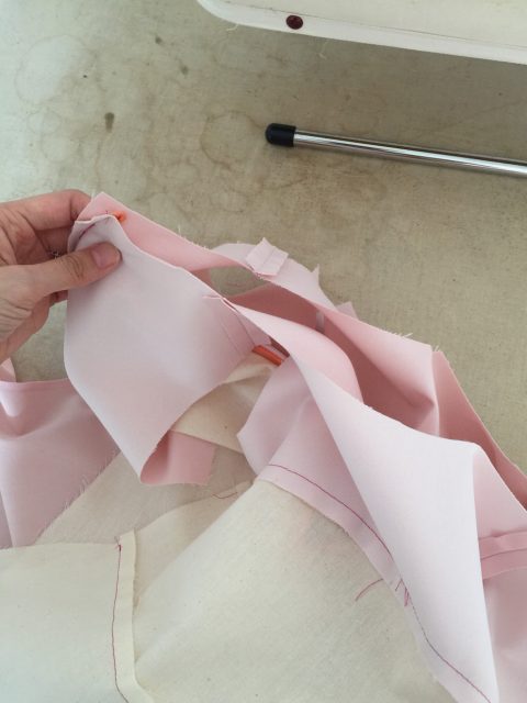 脇の縫い代幅が見返しと裏地とでちがっちゃった。。キセの都合上。